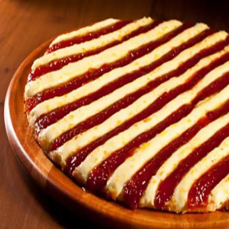 Deliciosa pizza 4 Queijos, com, mussarela, ovos, presunto, cebola e molho de tomate
